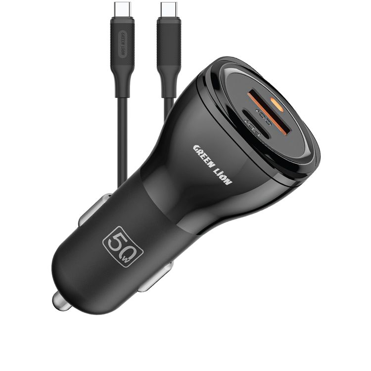 Green Lion Dual Port Car Charger with USB-C to USB-C Cable, PC Flame Retardant Material, Fast Charging, QC 20W & PD 30W Output Ports, Ultra Portable - Black