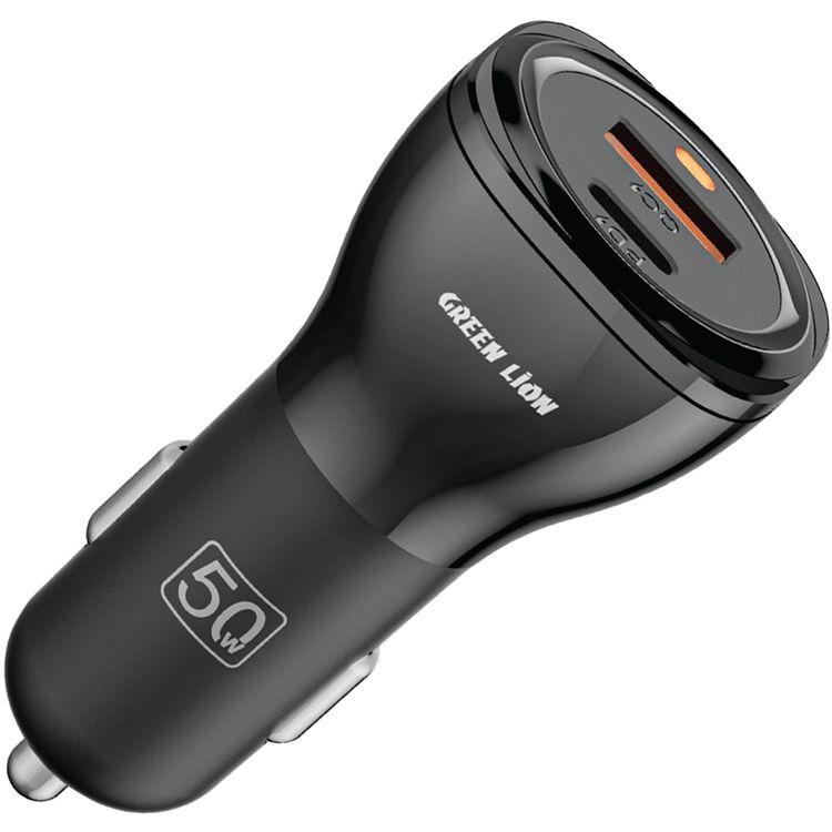 Green Lion Dual Port Car Charger with PC Flame Retardant Material, Fast Charging, QC 20W & PD 30W Output Ports, Ultra Portable - Black