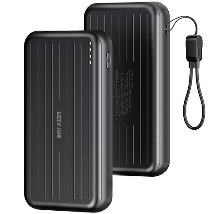 Green Lion Dynamo 10000mAh Power bank, PD 35W, Type-C Input, Type-C & USB-A Outputs, Polymer Battery, Slim & Lightweight - Black