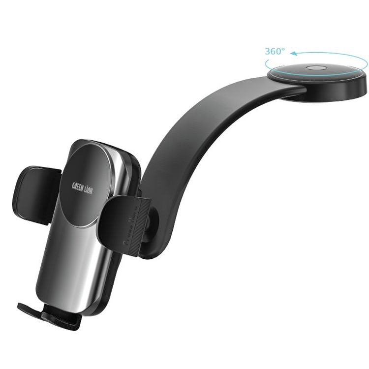 Green Lion FlexCharge Pro Phone Holder, Fast Charge, Compatible with 4.7" - 6.7" Devices, Power Delivery Up to 15W, One Button Release, Strong 3M Glue, Easy Installation, 360° Rotation - Black