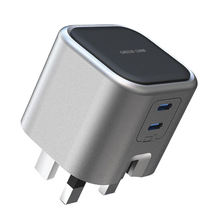 Green Lion GaN Adapter 45W Power Delivery with Dual USB-C Ports, Fast Charge, Multiple Protection, Breathing Light, Multi-Device Compatible, PC Flame Retardant Material - Gray