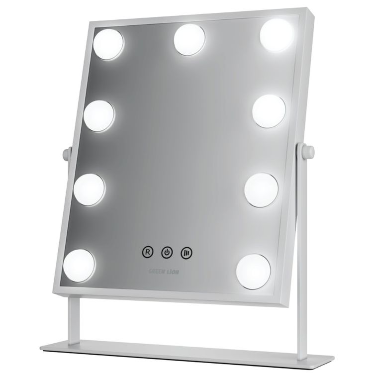 Green Lion Glam Shine Makeup Mirror with 9 LED Lights, 3 Color Modes, 5W Output Power, USB-A to Type-C Cable Connector, 360° Rotation, Touch Control - White