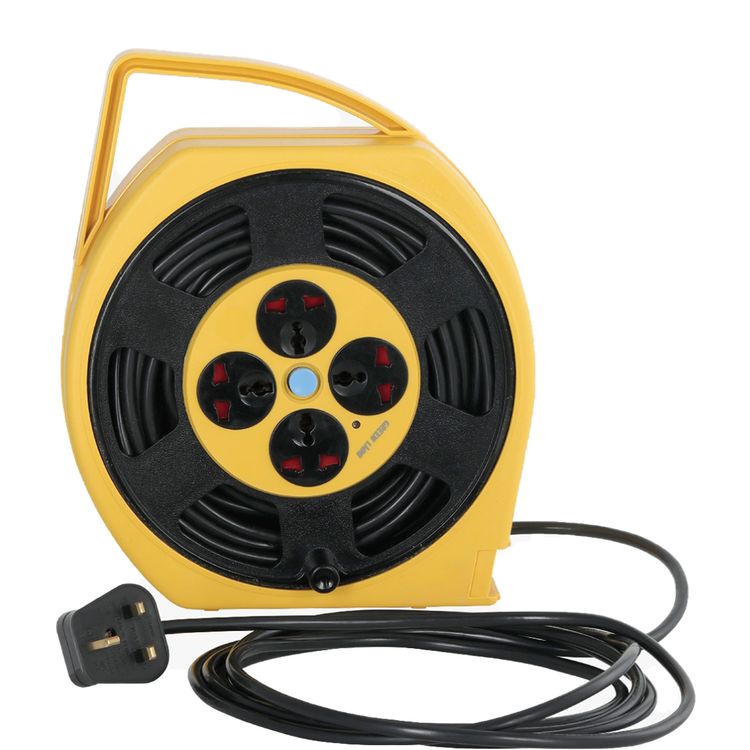 Green Lion GS-350 Power Socket with Wire Storage, Portable Handle, Pure Copper Wire, 2200W Power Delivery, 4 Universal Sockets, 15m Wire Length - Yellow