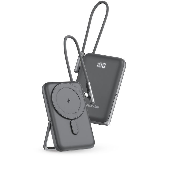 Green Lion Monte Carlo 10000mAh MagSafe Power Bank, Fireproof ABS+PC+Zinc Alloy, Microprocessor Chip, Built in Type-C Cables, Li-Polymer Battery PD 20W - Black