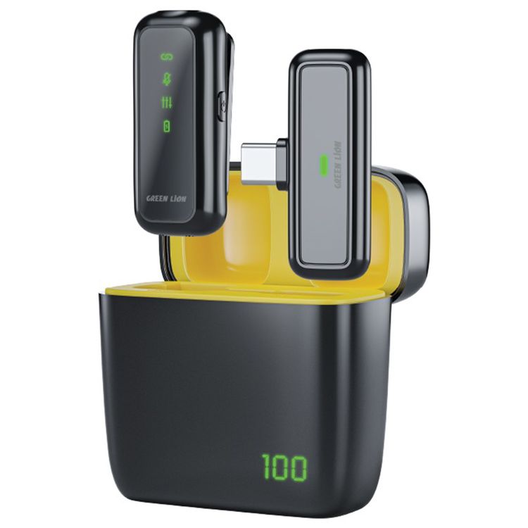 Green Lion SX5 Microphone for Type C, Omnidirectional Microphone, 1-2 Hours Charging Time, 6 Hours Battery Life, 20m Transmission Range, Digital Display - Black