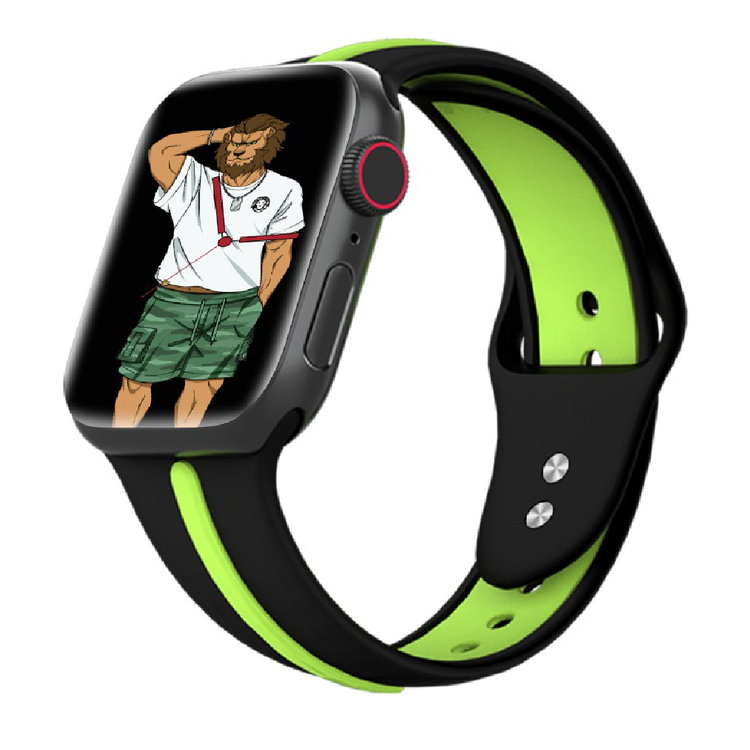 Green Lion Tanoshi Watch Strap, Fit & Comfortable Replacement Wrist Band, Adjustable Straps Compatible for Apple Watch 42/44mm - Black / Green Lion