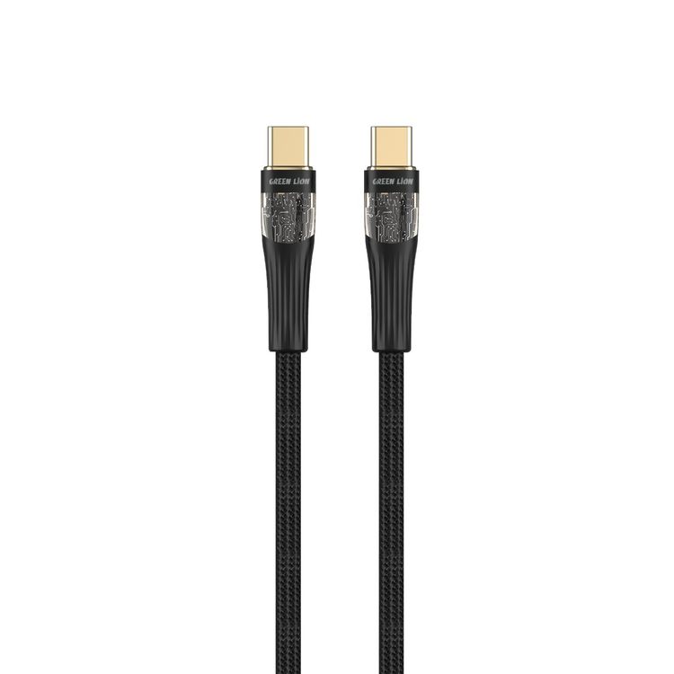 Green Lion Transparent Cable USB-C to USB-C with LED Light, Fast Charging & Sync, 100W, Wide Compatibility, Safe & Secure - Black