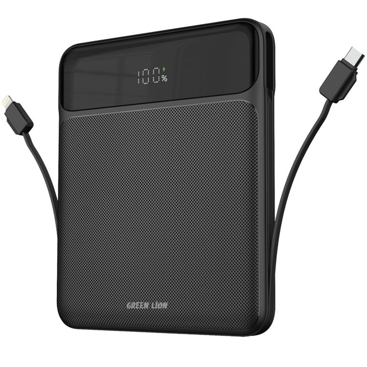 Green Lion Ultra-Thin 120W 20000mAh Power Bank, Lightning & Type-C Integrated Cables, Supports Laptop Charging, LED Digital Display - Black