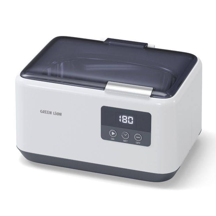 Green Lion Ultrasonic Cleaner, Compact Design, 600mL Tank Capacity, 5Preset Timing, Digital Display, Inner Lighting, Cleaning Tray, Low Noise, UK 1.2m Power Cord - White