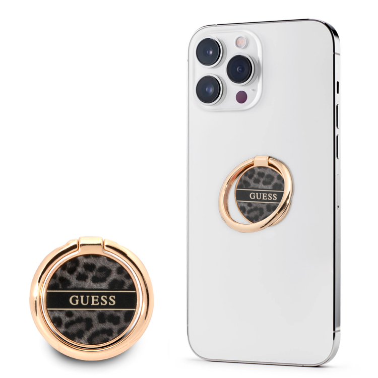 Guess Metal Ring Stand 4G, Compatible with All Smartphone - Leopard Black