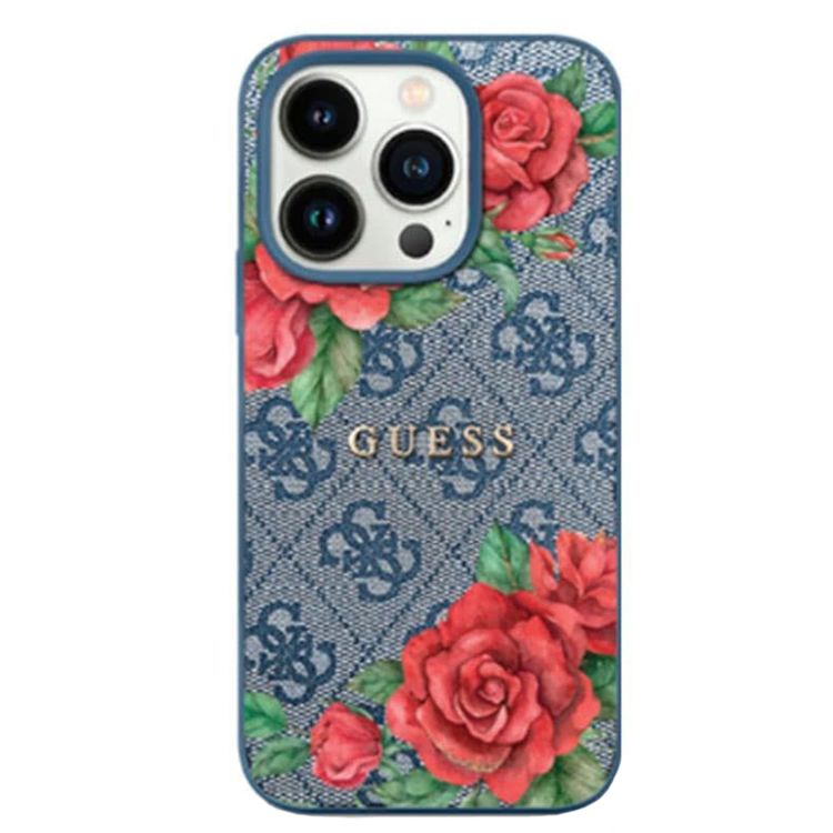 Guess PU 4G Hard Case with Roses Metal Logo for iPhone 16 Pro Max with Easy Snap on, Secure & Comfortable Grip, Raised Camera Edge - Blue