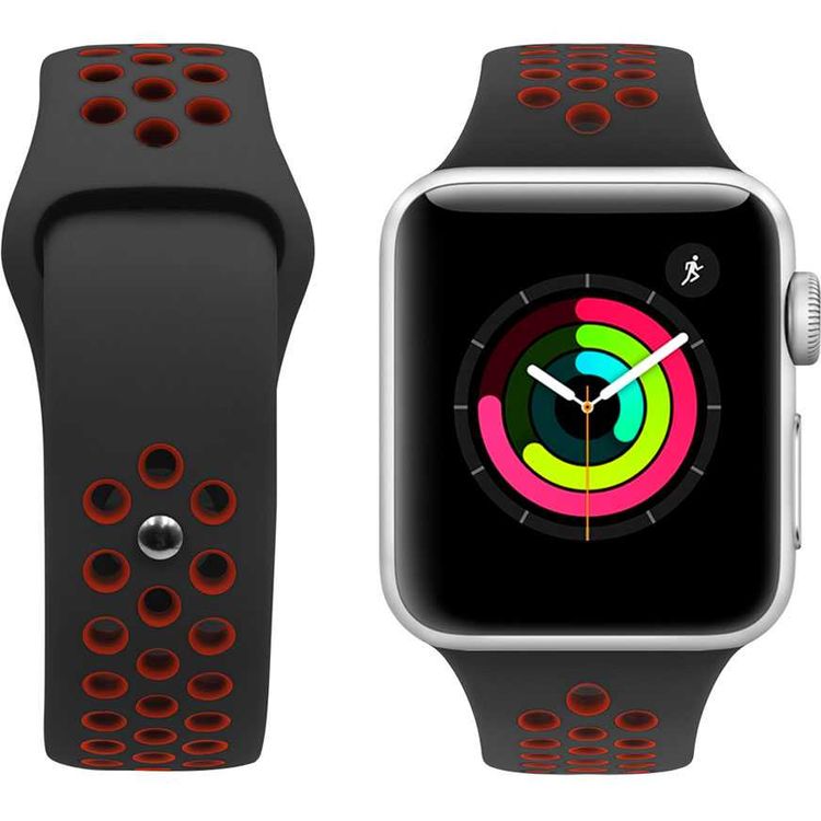 iGuard by Porodo Nike Watch Band, Fit & Comfortable Replacement Wrist Band, Adjustable Straps Compatible for Apple Watch 44mm / 42mm - Black/Red
