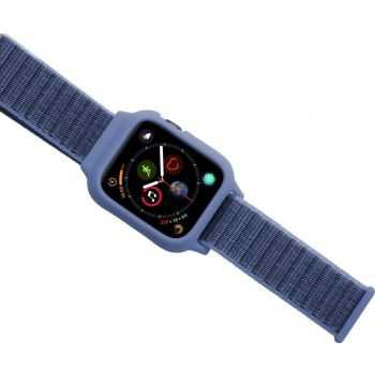 iGuard by Porodo Nylon Watch Band with Shockproof Case, Fit & Comfortable Replacement Wrist Band, Adjustable Straps Compatible for Apple Watch 44mm/42mm - Blue