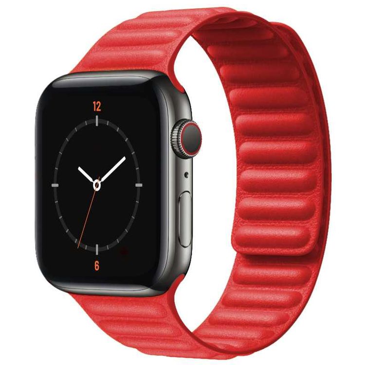 iGuard by Porodo Premium Leather Adjustable Magnetic Watch Band for Apple Watch, Fit & Comfortable Replacement Wrist Band Compatible for Apple Watch 44mm / 42mm - Red