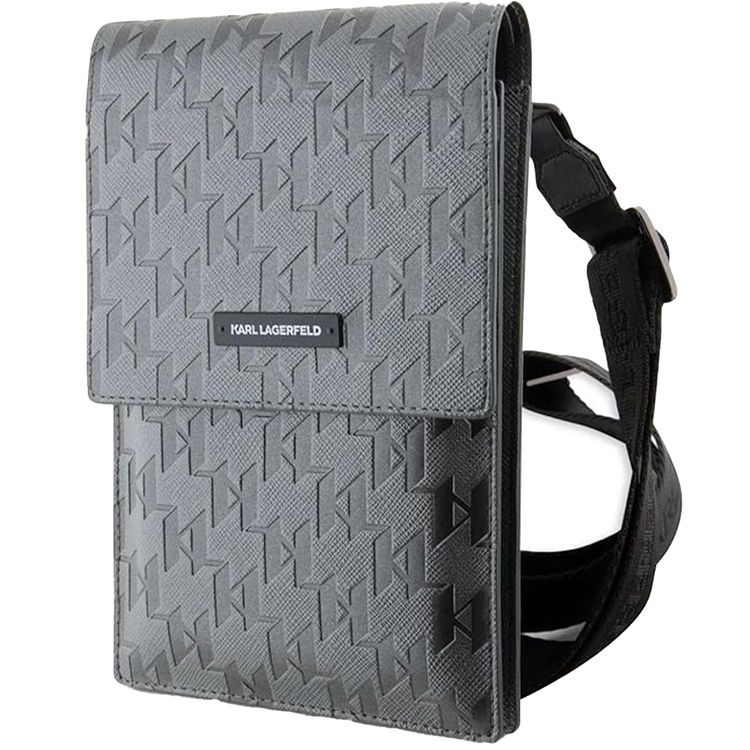 Karl Lagerfeld Saffiano Leather Phone Pouch With Strap & Monogram Plaque, Stylish And Practical, Iconic Design