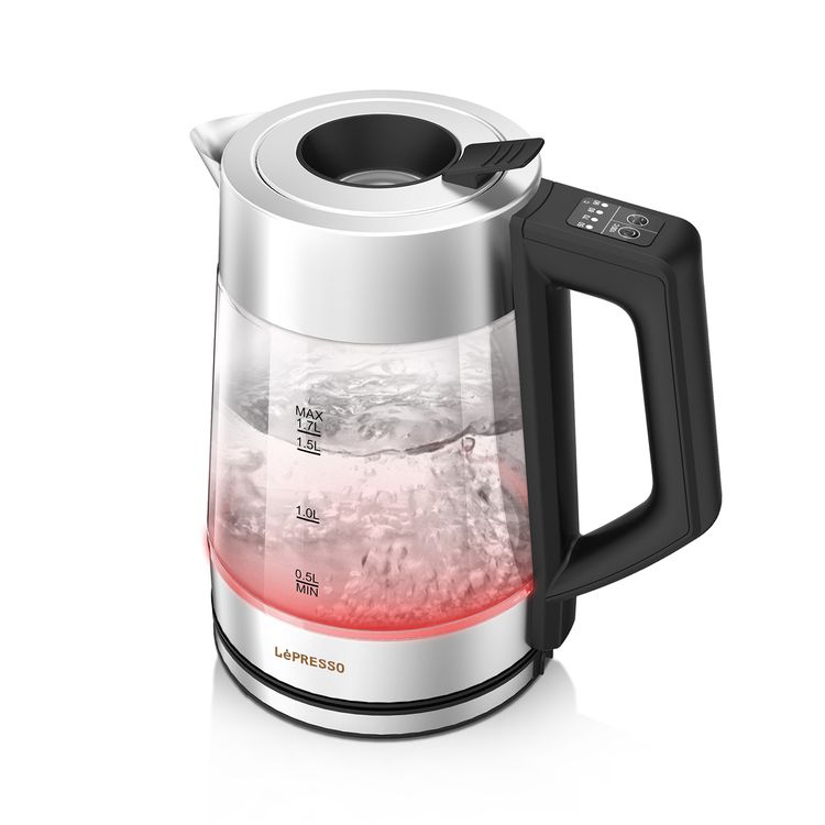 LePresso Illuminated Glass Kettle, 1.7L Capacity, 2200W Rated Power, Ergonomic Handle, Quick Heating, Keep Warm Option, Boil Dry Protection - Black