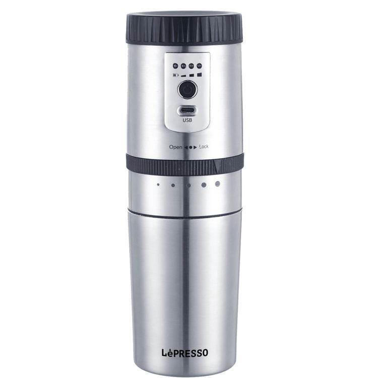The LePresso Portable Mug Burr Grinder Coffee Maker combines all the magic of coffee making in one compact and elegant device.