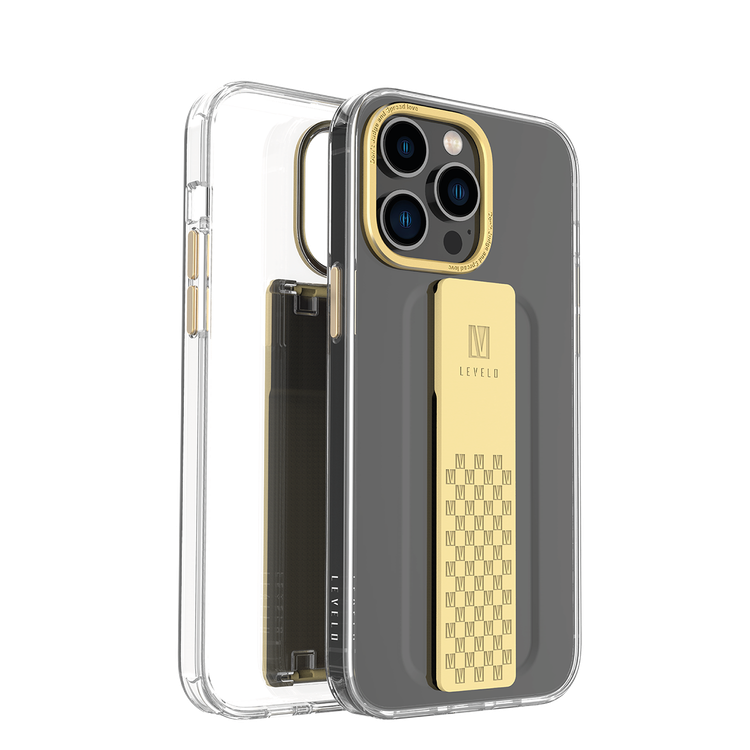 Levelo Graphia IMD Clear Case with Extra Grip for iPhone 14 Pro - Champagne