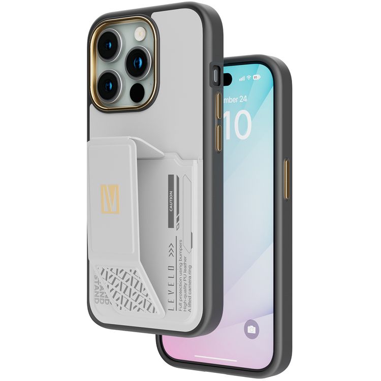 Levelo iPhone 15 Pro For Morphix Gripstand Case With Cardholder - Grey