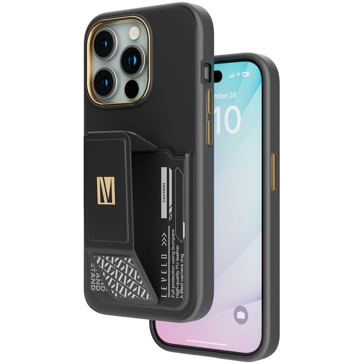 Levelo iPhone 15 Pro Max For Morphix Gripstand Case With Cardholder - Black