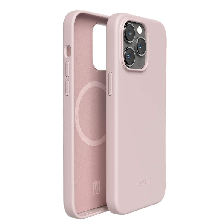 Levelo Iris Magsafe Compatibility Liquid Silicone Case for iPhone 14 Pro Max, Magsafe Compatible, Camera lens Protection, Shock- Proof Edges - Pink