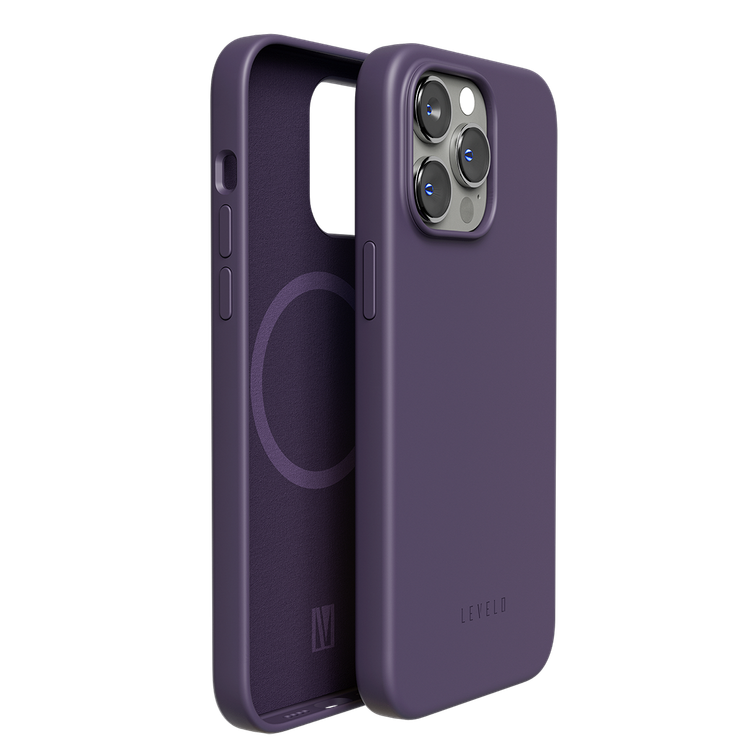 Levelo Iris Magsafe Compatibility Liquid Silicone Case for iPhone 14 Pro Max, Magsafe Compatible, Camera lens Protection, Shock-Proof Edges - Purple