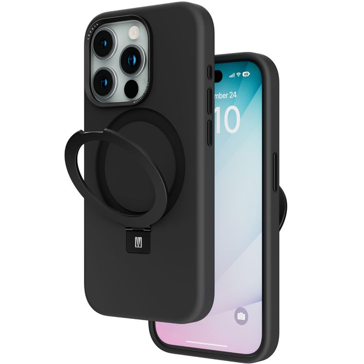 Levelo Iris Pro Liquide Silicone Case for iPhone 15 Pro Max, Magsafe, Anti Scratch, Shock-Proof Edges, Aluminum Camera Cover - Black