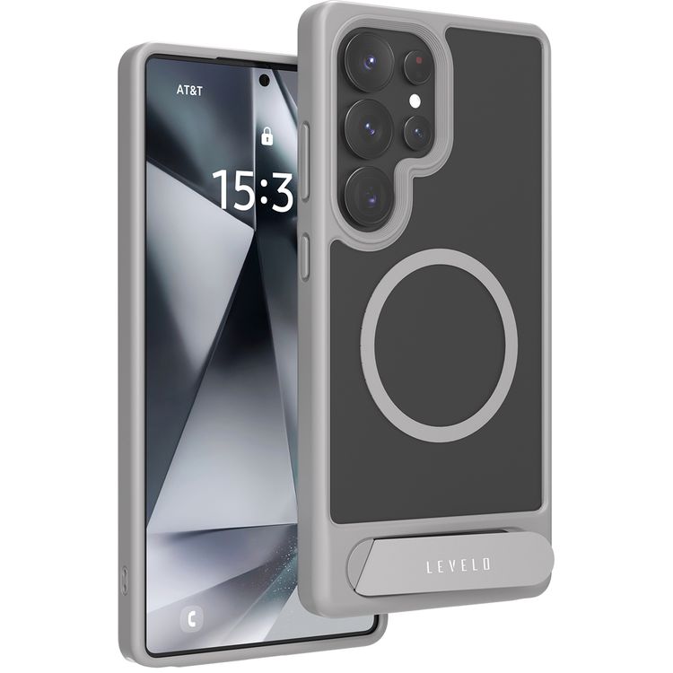 Levelo Matteo Case with Built-in Kickstand for Samsung Galaxy S25 Ultra, Impact-Resistant Corners, MagSafe Compatible, Anti-Fingerprint, TPU & PC Material - Gray