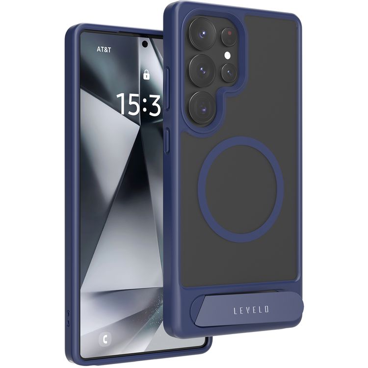 Levelo Matteo Case with Built-in Kickstand for Samsung Galaxy S25 Ultra, Impact-Resistant Corners, MagSafe Compatible, Anti-Fingerprint, TPU & PC Material - Blue