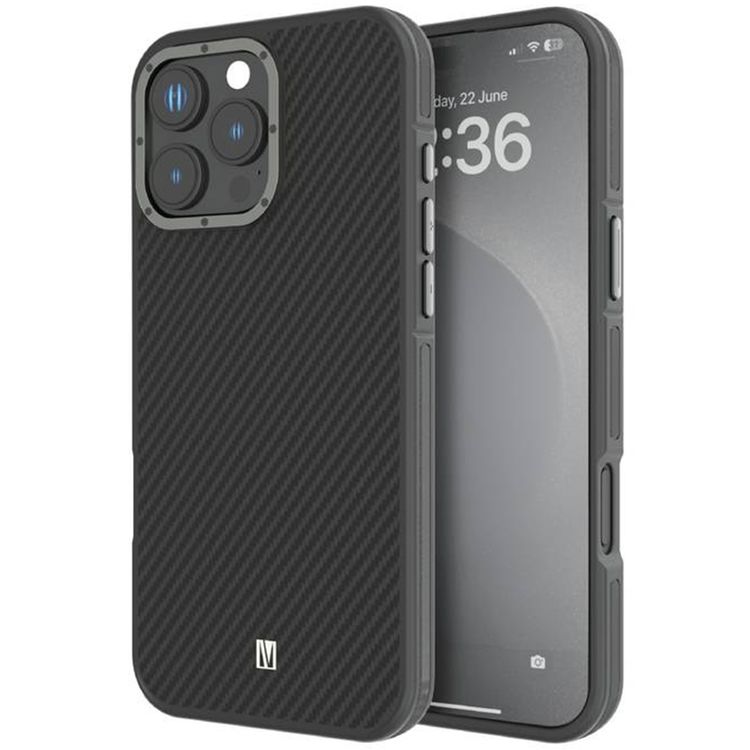 Levelo Ox Carbon Case for iPhone 16 Pro Max, MagSafe Compatible, Matte Coating, Anti-Finger Print - Gray