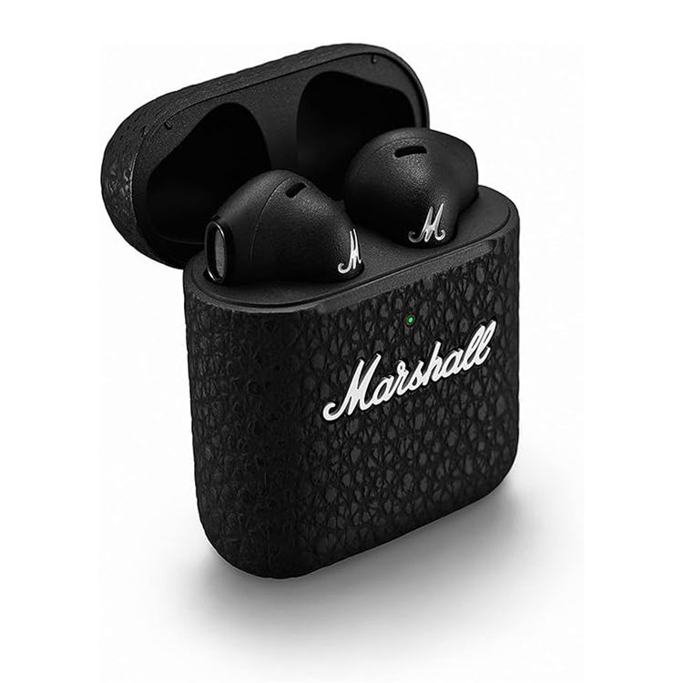 Marshall Minor III Wireless Earbuds, 25 Hours Playtime, Intuitive Touch Controls, Fast & Wireless Charging, Water Resistant, Custom Tuned Drivers, Marshall Signature Sound, 10m Bluetooth Range - Black