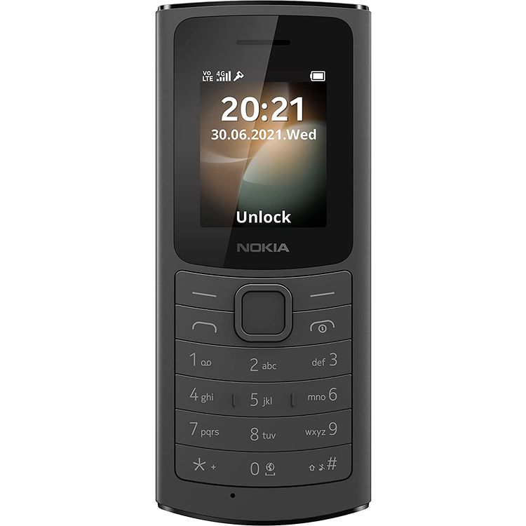 Nokia 110 4G Classic Feature Phone, Dual Sim, 1.8" Screen, Long Battery Life - Black
