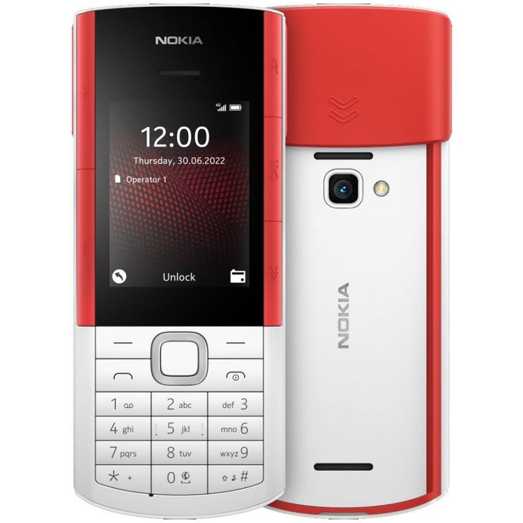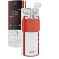 Nokia 5710 Xpress Audio Feature Phone with built-in wireless earbuds, 4G Connectivity, (Dual SIM) - White and Red