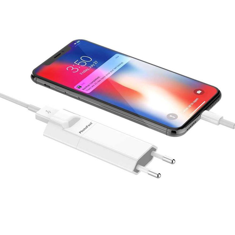 PhotoFast PhotoCube for iOS, backup your iPhone to Micro SD memory card automatically whilst it charges, White