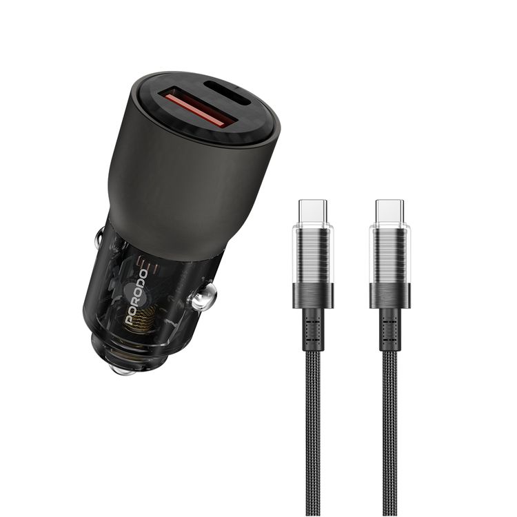 Porodo 95W Car Charger Transparent with 90cm USB-C Cable, Simultaneous Fast Charging, Universal Compatibility - Gray