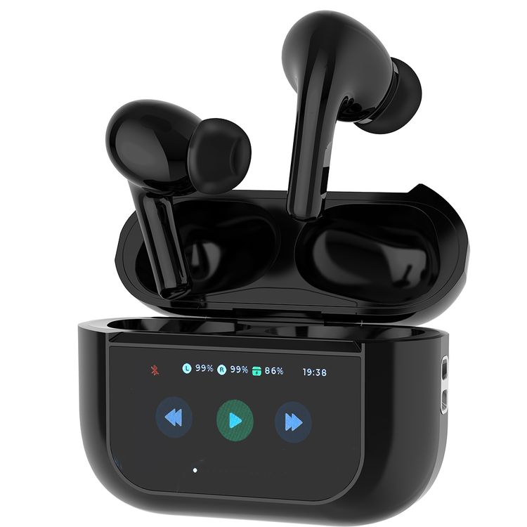 Porodo Blue AirPods Pro2 with Screen, Deep Bass, Touch Control, Camera Shutter, Music Playback, Call Management, 20 Hours Working Time, 1.47 inches Screen size - Black