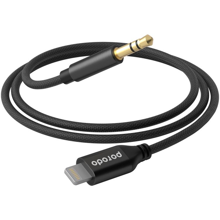 Porodo Braided Lightning to 3.5mm AUX Cable 1.2M - Black
