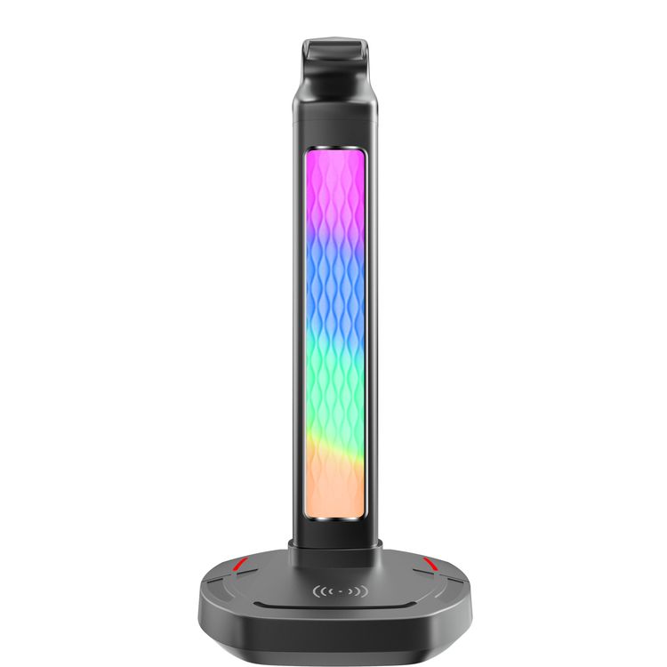 Porodo Gaming 5W RGB Headset Stand, Wireless Charger USB Hub with Screen Lamp - Black