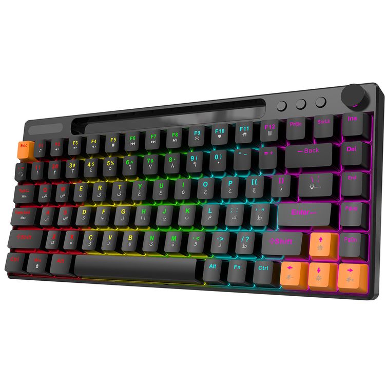 Porodo 84 Keys Mechanical Gaming Keyboard, 23 Blacklight Modes, Smooth Clicks, Arabic Keys, Compatible with Mac & Windows, Volume/Mute Knob - Black