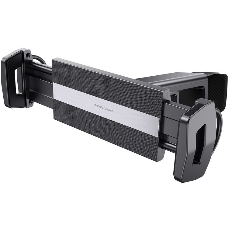 Porodo HS03 Universal Adjustable Tablet & Phone Mount, ABS + PC + Silicone Material, Horizontal & Vertical, Stabilized Clamp Base, Up to 1.37" Clamp - Black