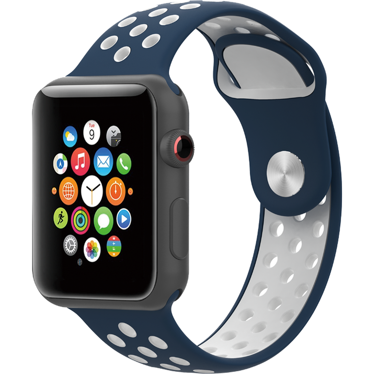 Porodo iGuard Sport Silicone Watch Band For Apple Watch 42/44/45mm - Blue / White