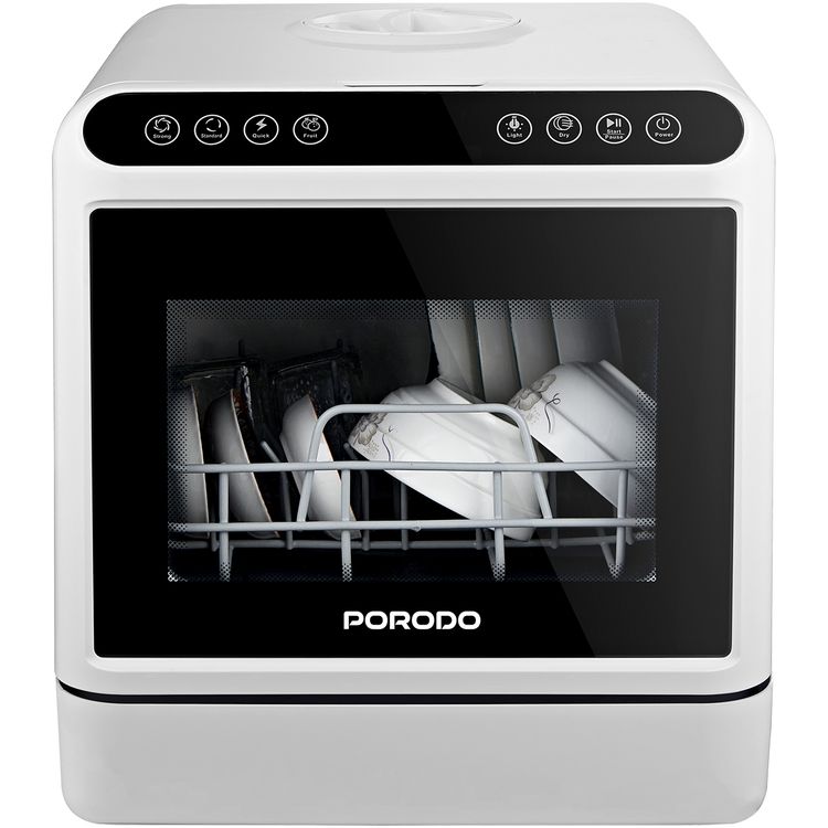 Porodo Lifestyle Counter-Top Dishwasher 220V, 5L Water Tank Capacity, 25L Space Capacity, Hot Air Drying, Hygienic Cleaning Power, UV Sterilization - White