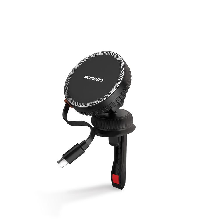 Porodo MagSafe Charger with Retractable Type-C Cable, 15W, 12-24V, 5V/2A, 9V/2A 18 W USB-C Input, 5 W, 7.5W, 10W, 15W Wireless Output, Compatible with 4.7-6.9" Smartphones - Black