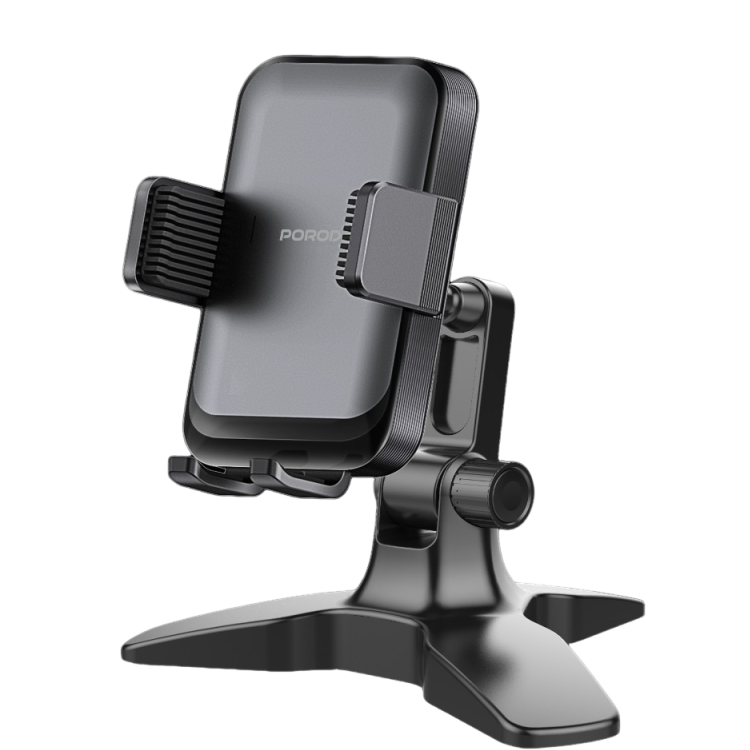 Porodo Multi-Angle Desk Phone Holder for 4.7"-7" Devices, Stable Tripod Base, Rotating Ball Joint, Durable Material - Black