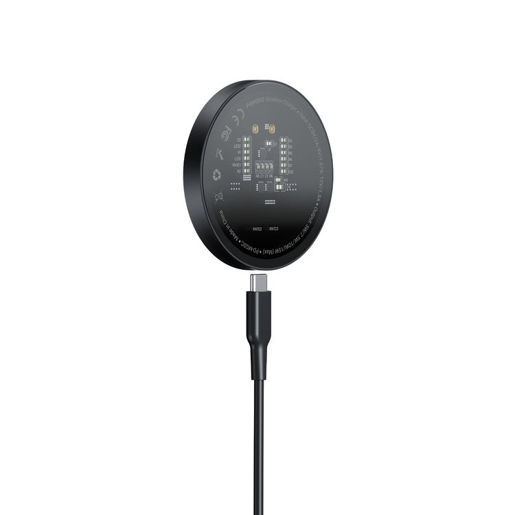 Porodo Transparent MagSafe Charger with TPU Cable, 1.8M - Black