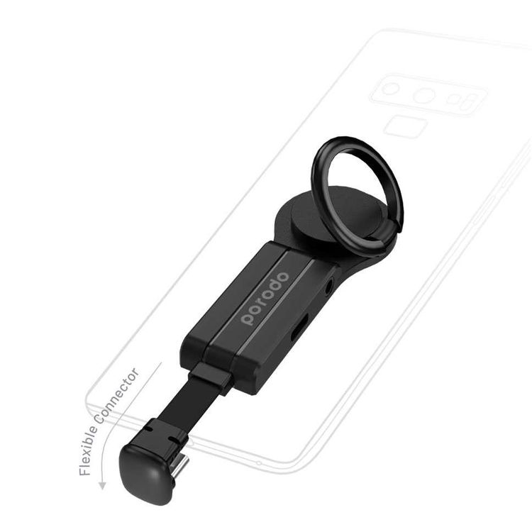 Porodo Type-C And 3.5Mm Adapter (Charge & Audio) With Finger Grip 2A, Black