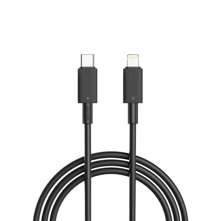 Porodo Type-C to Lightning PVC Cable 3m, 480Mbps Transfer Speed, PD 27W, more than 15000 Bends Life Span, Tangle Free - Black