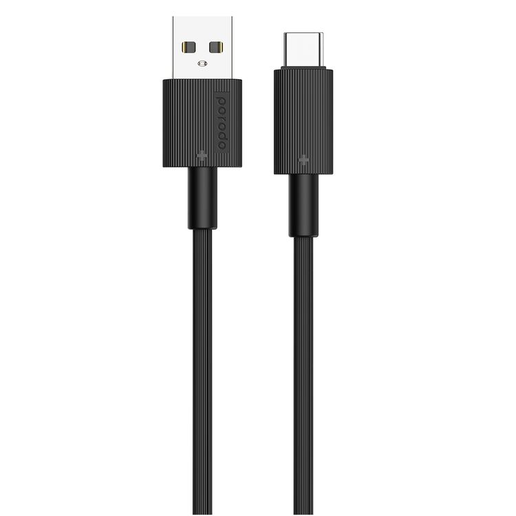 Porodo USB A to C PVC Cable, 480Mbps Transfer Speed, more than 15000 Bends Life Span, 1.2m Cable length, Tangle Free - Black