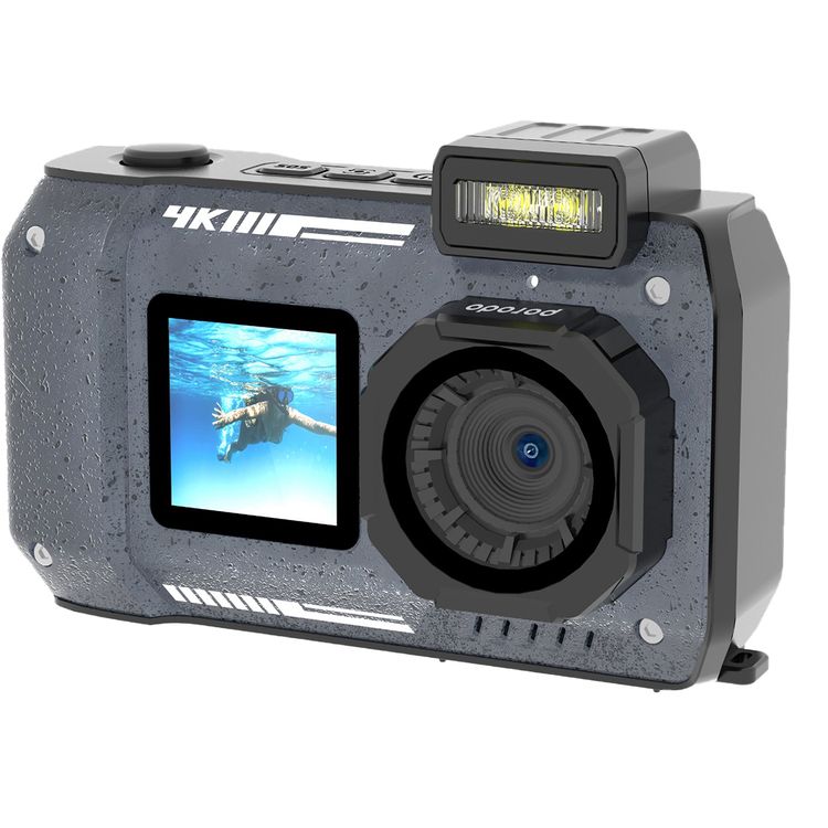 Porodo Waterproof Digital Camera with Dual Screen, 48MP, 2.88" Main Display, 1.44" Secondary Display, 18x Zoom Lens, 20 Beauty Filters, 4K Video, IP68 Waterproof, 2500mAh Battery Capacity - Black