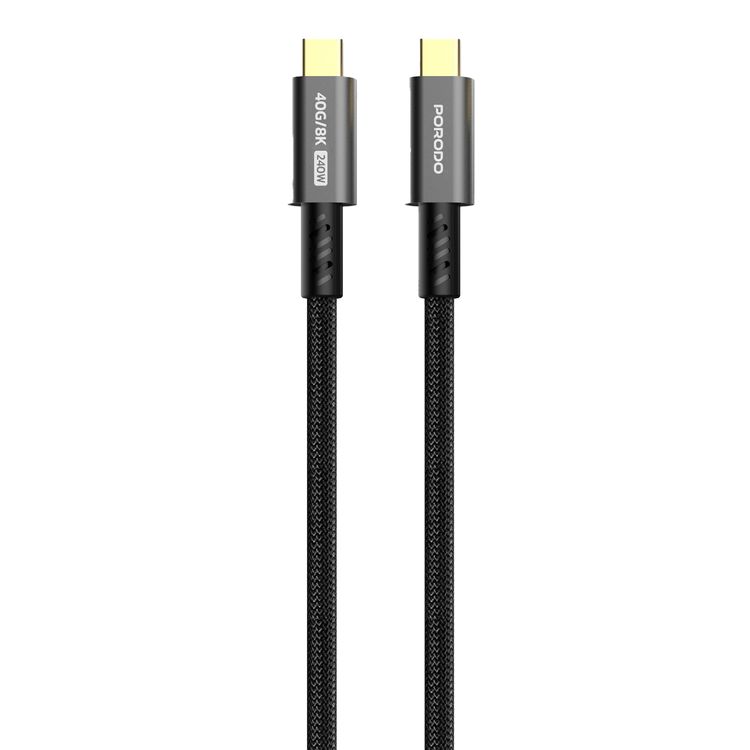 Porodo Thunderbolt Type-C to Type-C Cable with 240W Power Delivery, Rapid Data Sync, 40Gbps Data Transfer Speed, 1.8m in Length - Black